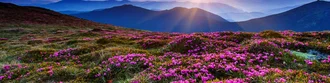 - flowerMagic pink rhododendron flowers on summer mountain.Carpathian, Ukraine.
